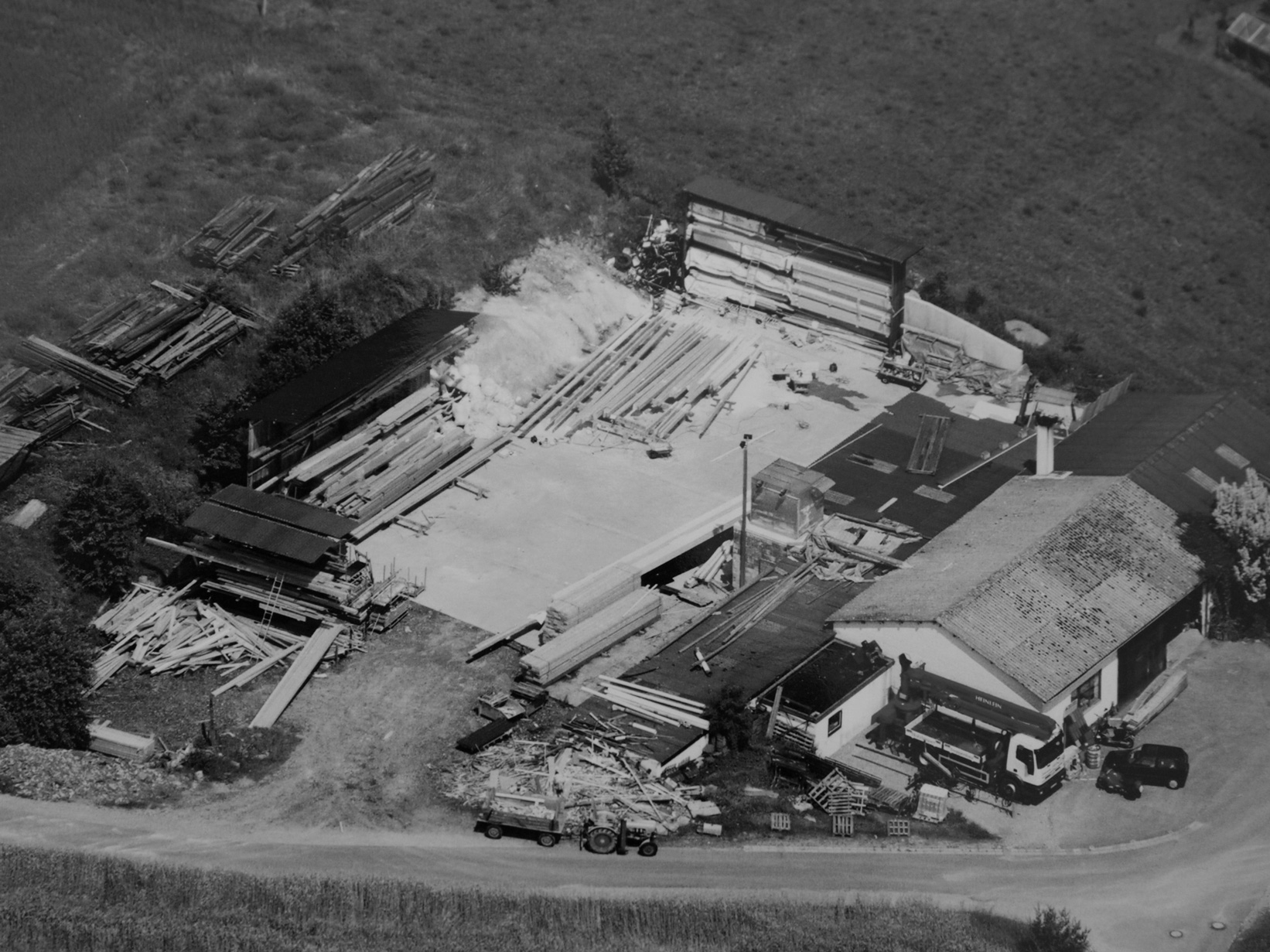 Unsere Historie beginnt mit dem Kauf der Zimmerei Faust, in der Kleinerlbacher Ortsstraße in Neustadt a. d. Aisch, wo heute ein reines Wohngebiet liegt. Die Einzelfirma Zimmerei Georg Heinlein zählte damals 5 Mitarbeiter und führte klassische Zimmererarbeiten aus, konstruierte Dachstühle, sanierte Dächer und baute unter anderem Tore und Hoftürchen.